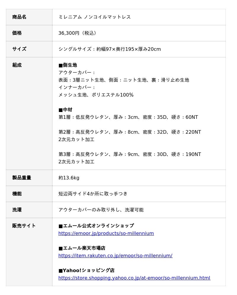 「身体に合った寝る・座る・たたむ」を提供する健康家具ブランドEMOORを展開する株式会社エムール(東京都立川市:代表取締役 高橋 幸司/以下エムール)は、2026年2月2日より『ミレニアム ノンコイルマットレス(以下、ミレニアムマットレス)』の販売を開始しました。