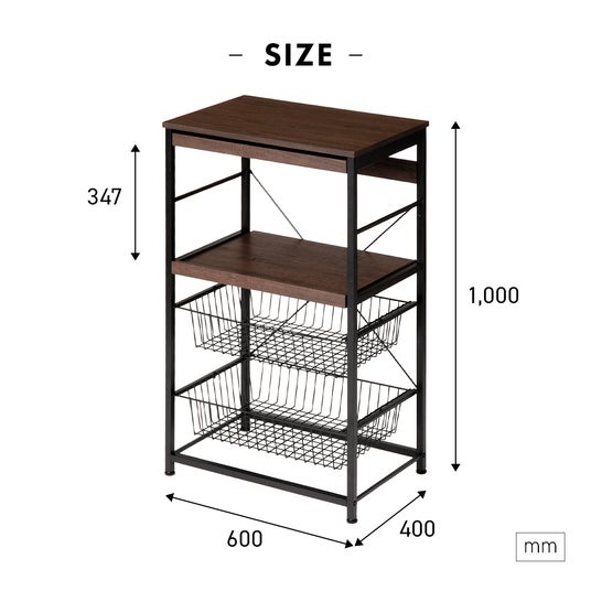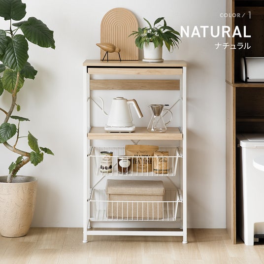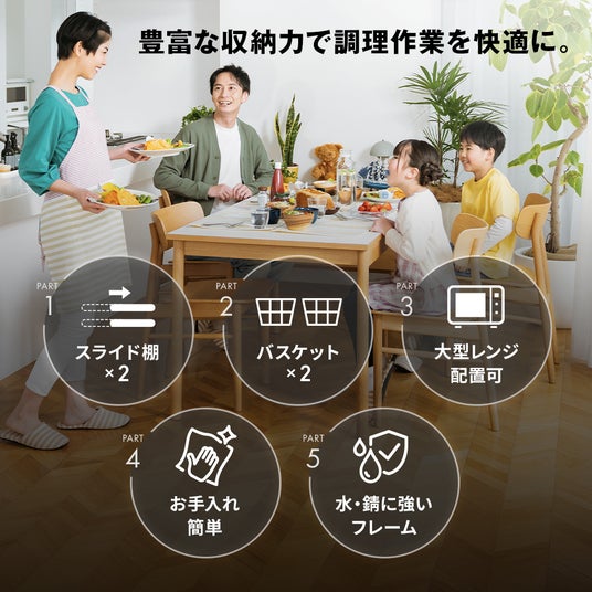 スライド棚×2、ワイド天板(約60×40cm)などの多機能収納
