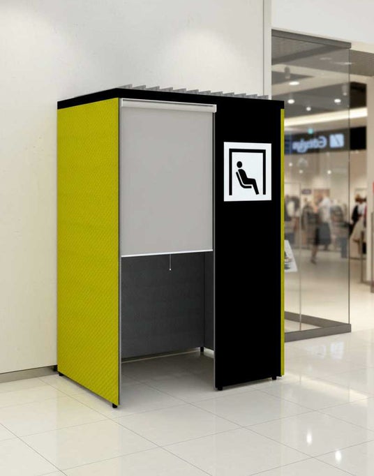 視覚・光の抑制: ロールスクリーンを下ろすことで、外部からの視線や光を抑制し、個室感を高めます。シースルータイプを採用することで、プライバシーを守りつつ外部から使用状況を確認できる安全性も確保しています。