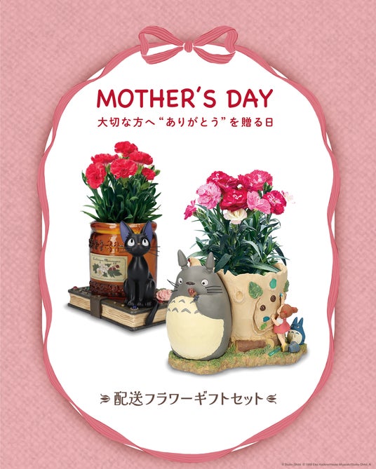 「ジブリがいっぱい どんぐり共和国」で毎年人気の配送ギフトに、今年も「となりのトトロ」と「魔女の宅急便」のフラワーギフトが登場します。配送ギフトは2026年3月13日(金)より、全国の「ジブリがいっぱい どんぐり共和国」とオンラインショップにて予約受付を開始いたします。母の日の期間に合わせて、一部離島を除く日本全国へお届けが可能です。