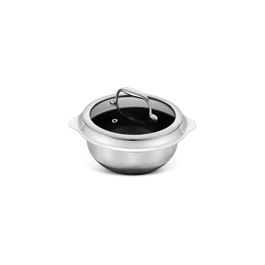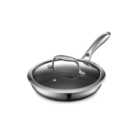 HexClad独自のハイブリッド構造により、優れた熱伝導で食材に均一に火が通り、美しい焼き目をつけながらもくっつきにくいノンスティック性能を実現。