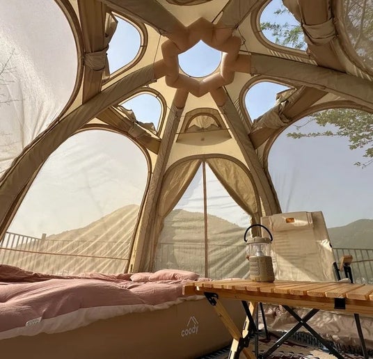 初心者や女性でも安心して使え、広々とした快適空間で家族や友人とゆったり過ごせます。設営や撤収の手間を減らし、大切な人との時間を存分に楽しめるのも魅力。さらに、耐風・防水性に優れた高品質な素材を採用しているため、どんな天候でも快適に過ごせます。上質なグランピングスタイルを気軽に体験し、特別な思い出を。