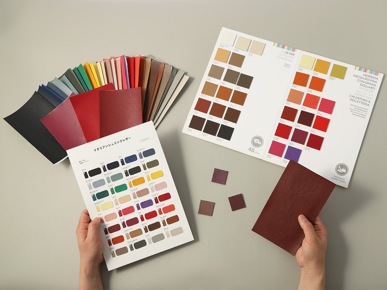 こちらのシリーズではマルーンカラーに加えて、COVERARYで人気のイタリアンシュリンクレザー32色のうち29色からもお選びいただくことが可能です。