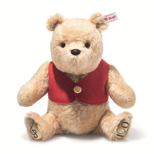 アンゴラヤギの最高級モヘアが使われ、足にはト音記号と100周年を記念したロゴが刺繍されています。ボディには「 Winnie the Pooh 」が流れるオルゴールも内蔵されています。