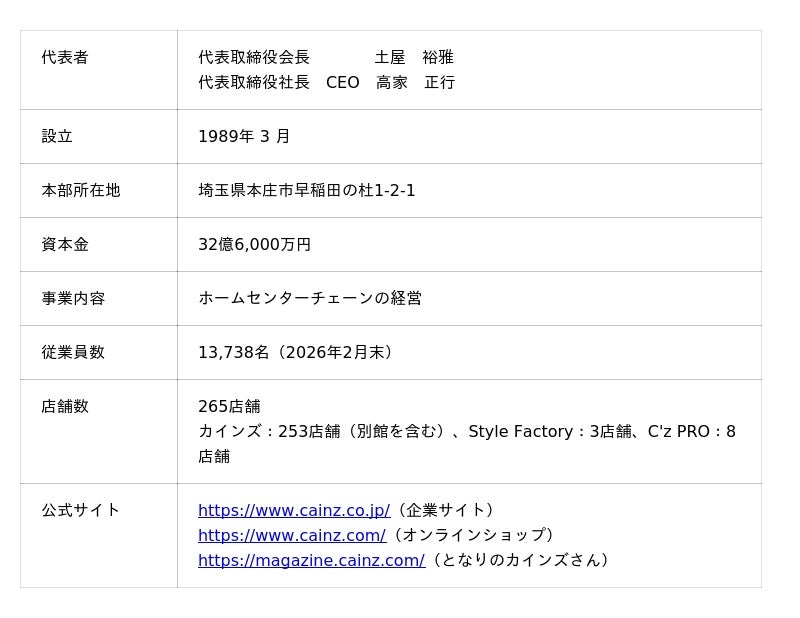 カインズは、家族それぞれのくらしに寄り添いながら、いつもの場所でいつもと違った体験を生み出す商品を通じて、親子時間をより大切にできる提案を続けてまいります。